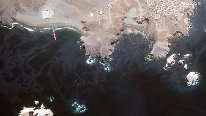 وأعلنت البيرو حالة طوارئ بيئية بعد تسرب نحو 264 ألف غالون (1.2 مليون لتر) من النفط الخام في البحر، السبت الماضي، عندما ضرب الموج العاتي ناقلة أثناء تفريغ حمولتها في مصفاة تكرير. ونتج الموج العاتي بشكل غير طبيعي عن ثوران بركان تحت البحر، قرب أرخبيل تونغا. وأدى التسرب النفطي إلى تلوث شواطئ، وأضر صناعات الصيد والسياحة، فيما تعمل فرق بلا هوادة لتنظيف الفوضى التي أحدثتها الكارثة.