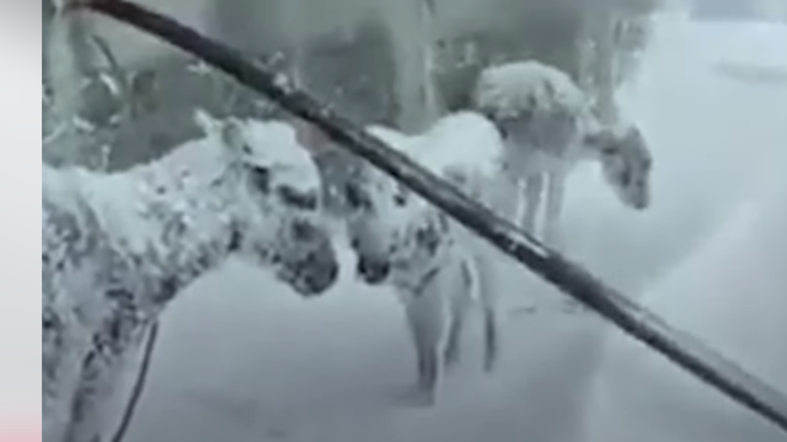 أظهرت مقاطع فيديو، حيوانات وكأنها محنطة وتكاد تتجمد تماماً من شدة البرد في ظل العاصفة الثلجية التي تضرب تركيا وعدة دول أخرى في الشرق الأوسط.