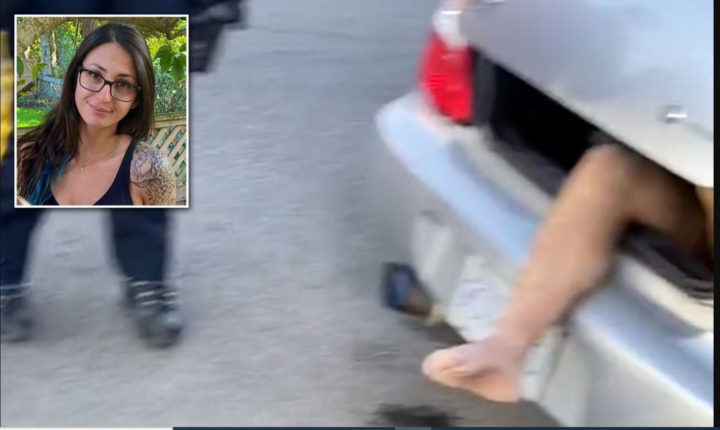 وفي وقت لاحق، حضر رجال الشرطة إلى المكان، عندما كانت ساقا الرجل تتدليان من صندوق السيارة.