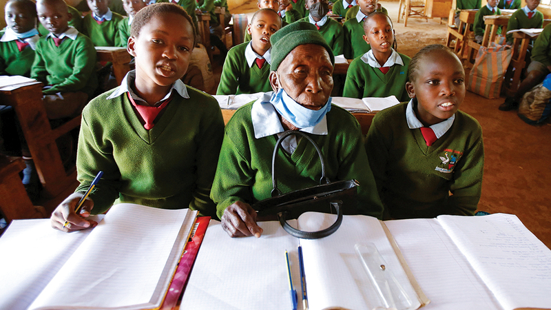 في قاعة دراسة مبنية بالحجارة بمنطقة الوادي المتصدع الريفية في كينيا، جلست «بريسيلا سيتيني»، التي تبلغ الـ99 يوم غد (الجمعة)، لتدون ملاحظات جنباً إلى جنب مع تلاميذ يصغرونها بأكثر من 80 عاماً. وارتدت سيتيني الزي المدرسي المؤلف من ثوب رمادي وسترة خضراء، وقالت إنها رغبت في العودة إلى المدرسة لتضرب المثل لأحفاد أولادها وسعياً للعمل بمهنة جديدة. وقالت لرويترز: «أريد أن أصبح طبيبة لأنني كنت أعمل قابلة».