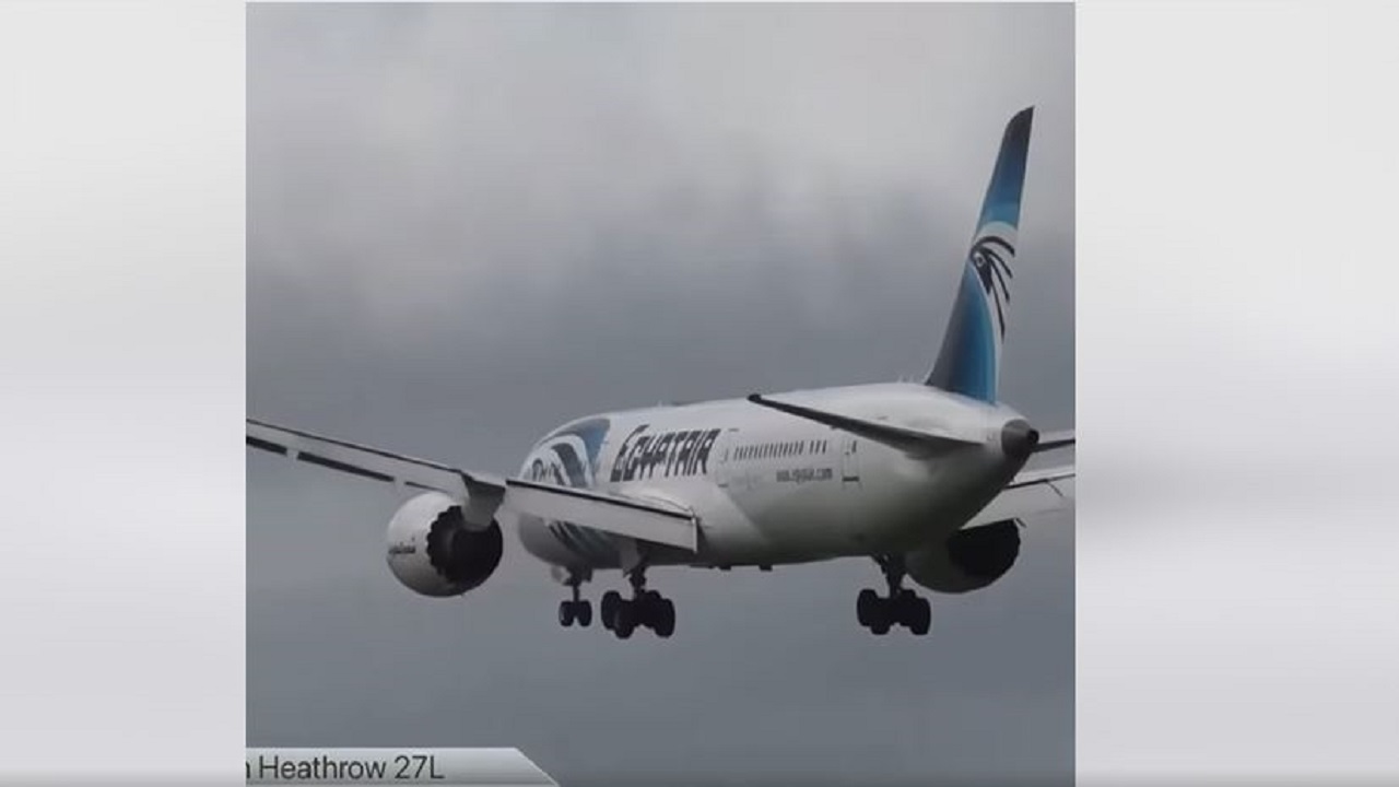 نشرت وسائل إعلام مصرية وأجنبية فيديو للحظة هبوط طائرة تابعة لشركة مصر للطيران في مطار هيثرو غرب لندن، رغم الرياح الشديدة التي أثارتها عاصفة يونيس.