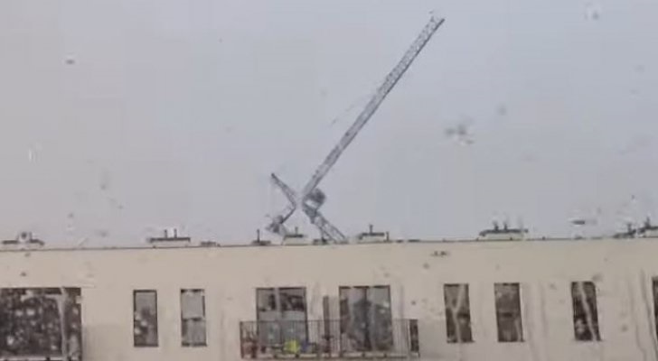 مشاهد مرعبة للحظة سقوط رافعة بسبب العاصفة "يونيس" في بولندا... فيديو