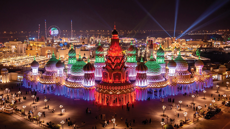 أن يجوب الإنسان العالم بلا تأشيرة دخول، وحجز تذاكر سفر، وميزانية مالية باهظة، حلم لا يتحقق إلا في القرية العالمي بدبي، التي وصفها زوارها بحاضنة الأوطان، وأرض السلام، وحلم محبي السفر والتعرف إلى ثقافات العالم.