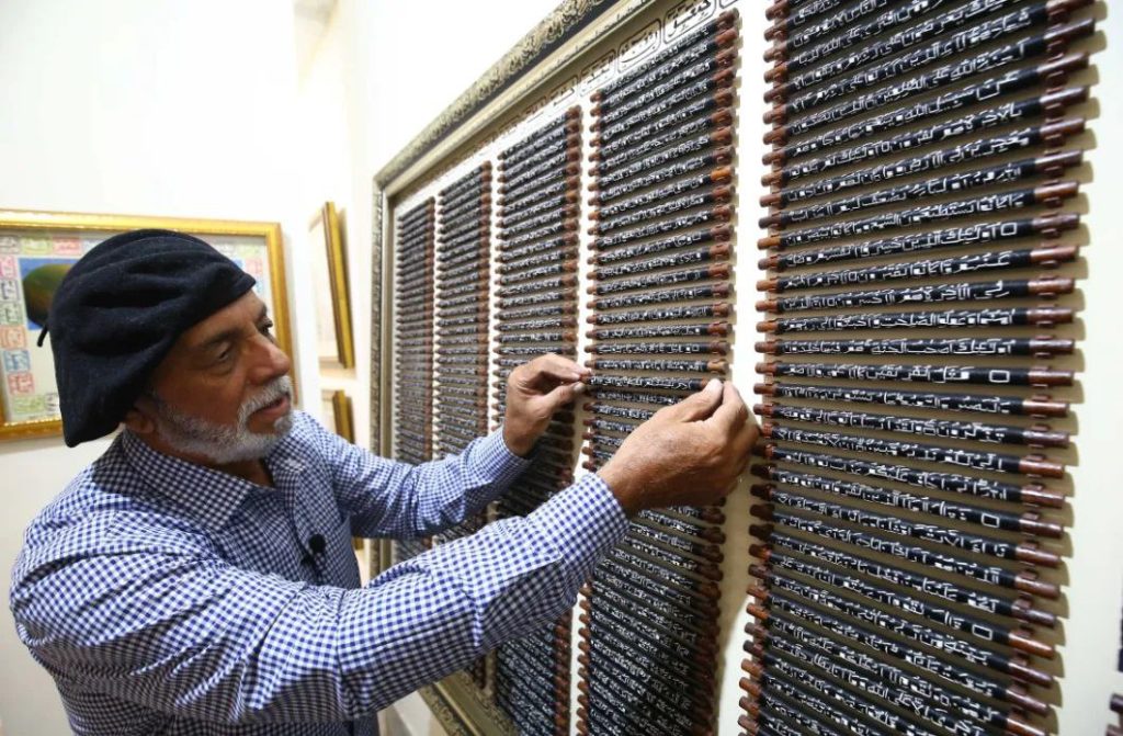 ضابط باكستاني متقاعد يقضي 10 سنوات في نسج آيات القرآن على 8 آلاف قلم رصاص ! فيديو