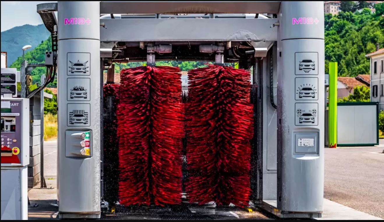 إلا أن السيارة تمايلت للأمام واليسار، مثبتة الرجل في عمود يحتوي على فرشاة غسيل ضخمة.