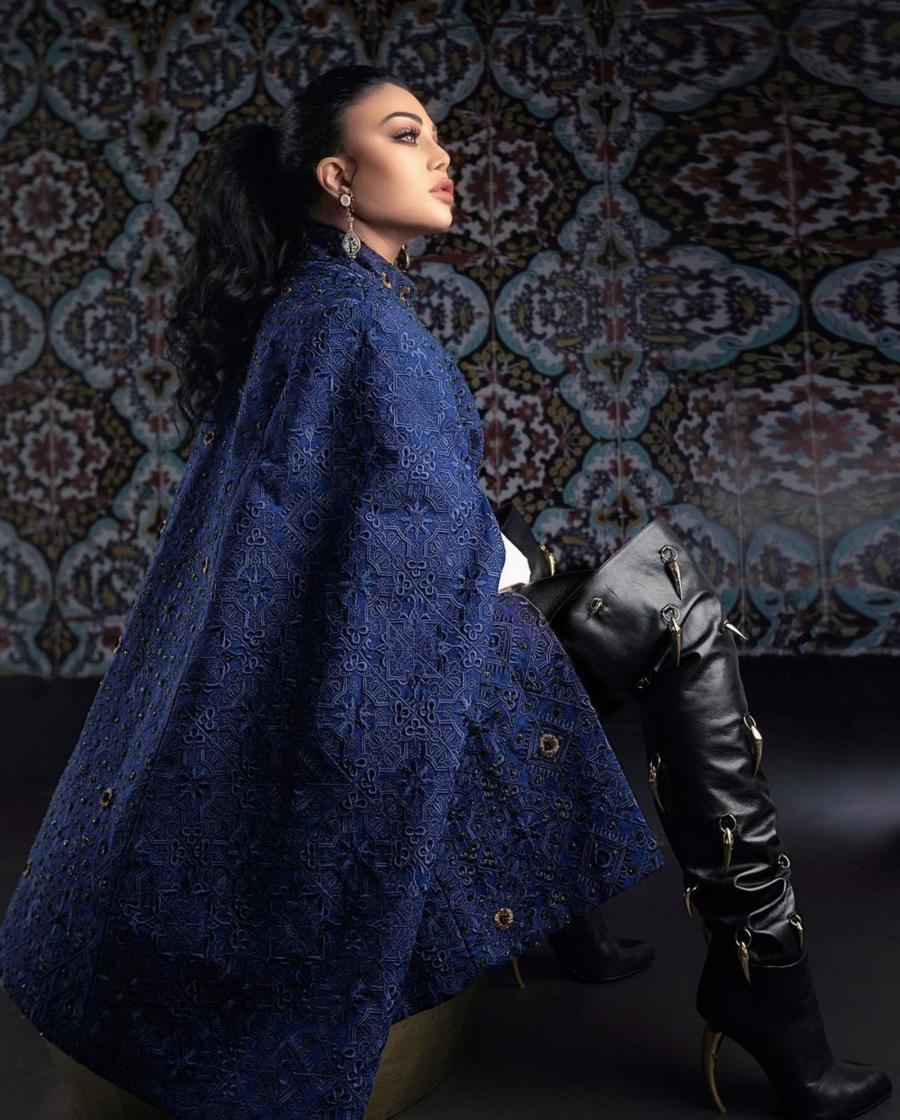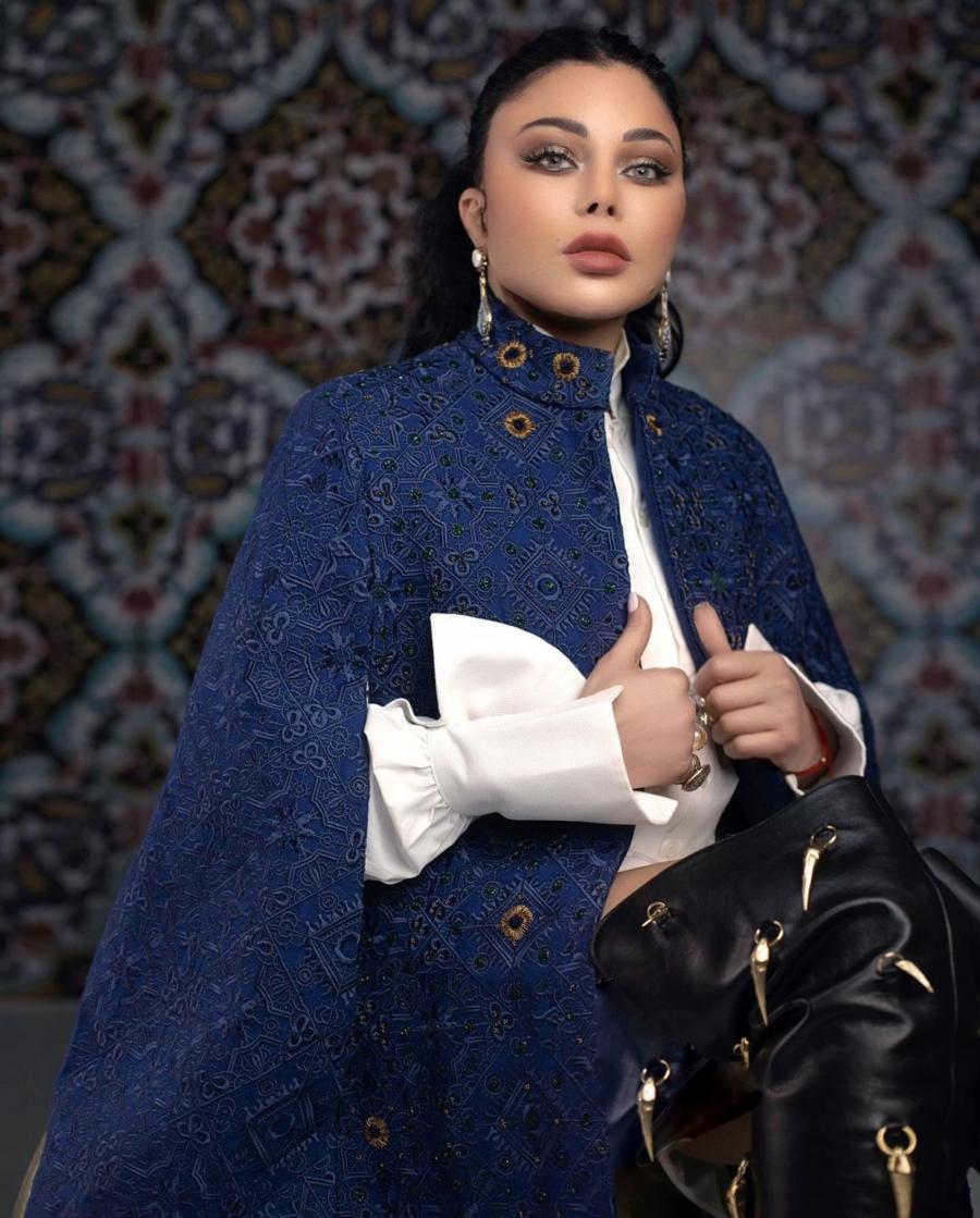 هيفا وهبي ظهرت بإطلالة جديدة رسمية غلى حد كبير، ولا تشبه إطلالتها المعتادة، فإرتدت رداء باللون الأزرق القاتم من قماشة مميزة، مع سروال من الجلد الضيق باللون الأسود، وقميص باللون الأبيض، مع حذاء عال من اللون الأسود وبكعب عال.