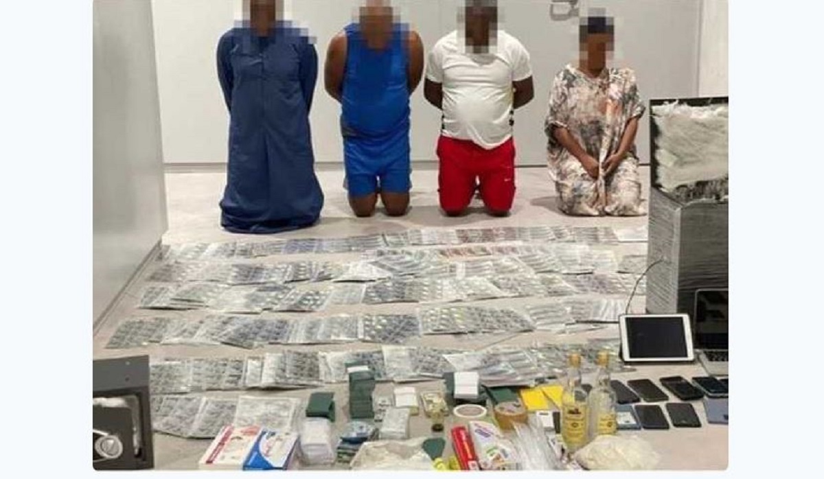 وتمت مداهمة مقر سكنهم وضبط أفراد العصابة وعدد من العملات النقدية الكويتية المزيفة من فئة 20 ديناراً كويتياً من الإصدار السادس، ودولارات أميركية من فئة 100 دولار وفئة دولار، وأوراق بيضاء وخضراء اللون،ولاصق، وأكياس بلاستيكية، ومسحوق أبيض وصندوق كبير الحجم اسود وقطن ابيض وزجاجتين خمر.
