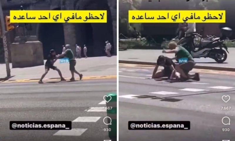 وثق مقطع متداول عبر مواقع التواصل الاجتماعي، قيام شاب بسرقة سائح بالقوة، في مدينة برشلونة الإسبانية.