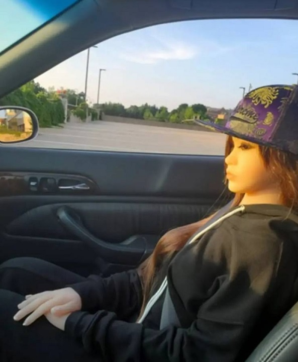 فيما أظهرت إحدى الصور التي نشرها في يونيو 2020، الدمية جالسة في مقعد الراكب الأمامي في سيارته حيث ربط لها حزام الأمان!