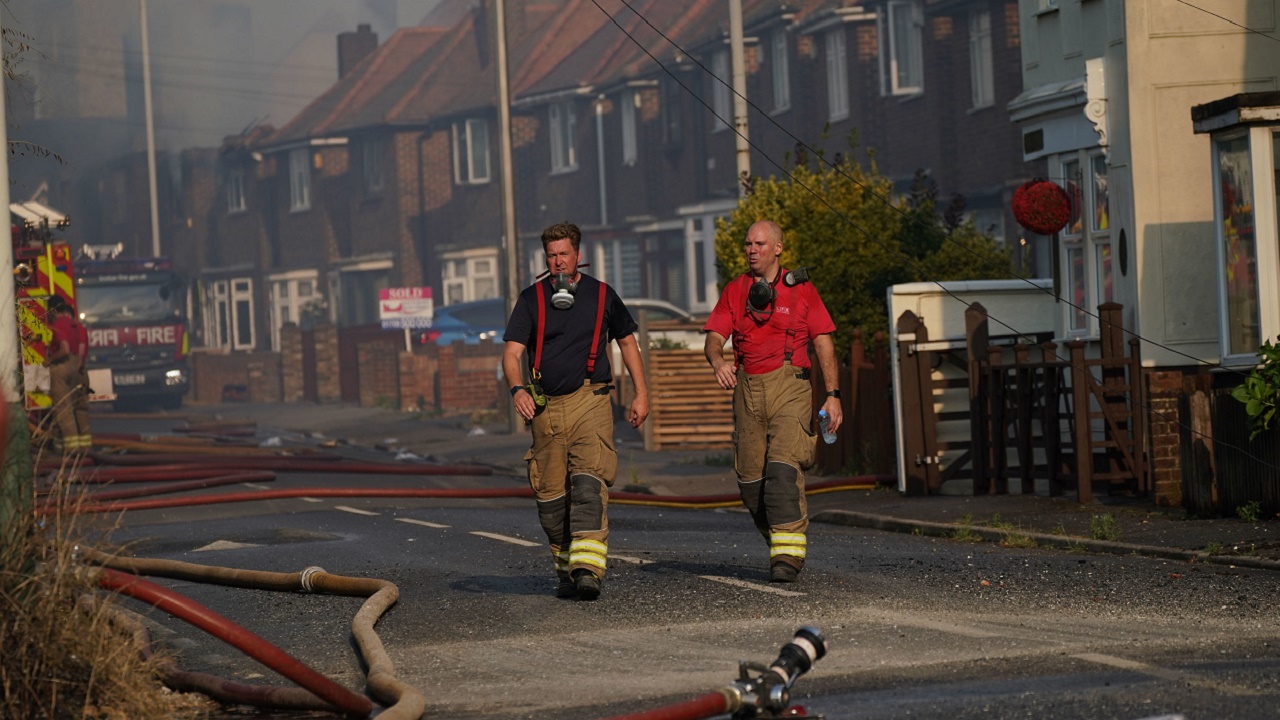 وأمس الثلاثاء كان أكثر الأيام التي عملت فيها خدمة إطفاء لندن منذ الحرب العالمية الثانية عندما تجاوزت درجات الحرارة الأربعين درجة مئوية للمرة الأولى، ما أدى إلى اشتعال حرائق طالت عشرات المباني في العاصمة، كما وصلت ألسنة اللهب إلى أراض عشبية جافة على جانبي خطوط السكك الحديد والطرق.