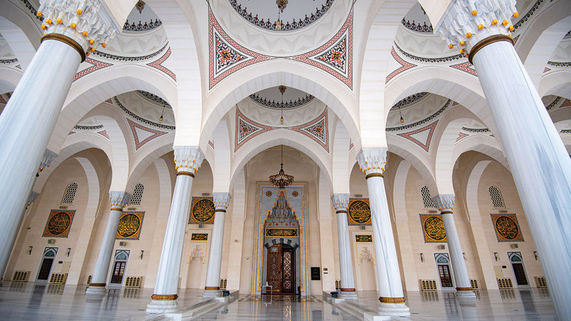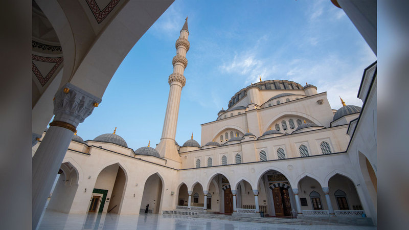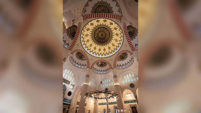 ويتسع المسجد لأكثر من 25 ألف مصلٍ، ويستقبل الزوّار من غير المسلمين، باعتباره معلماً سياحياً يُضاف إلى خيارات السياحة الثقافية في الإمارة، وعليه تم تجهيز المسجد بمرافق تتيح للزوّار والسياح فرصة التعرف إلى الثقافة الإسلامية، حيث يجسّد المسجد نموذجاً فريداً للفن الإسلامي الحديث، ويتسنى للزوّار الاطلاع على فنون النحت والأعمال الخشبية، واللوحات التي تحمل رسومات الخطوط العربية.