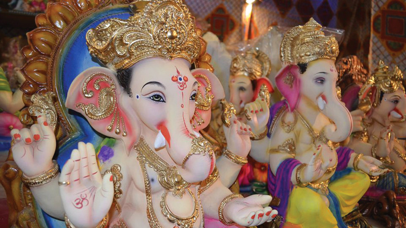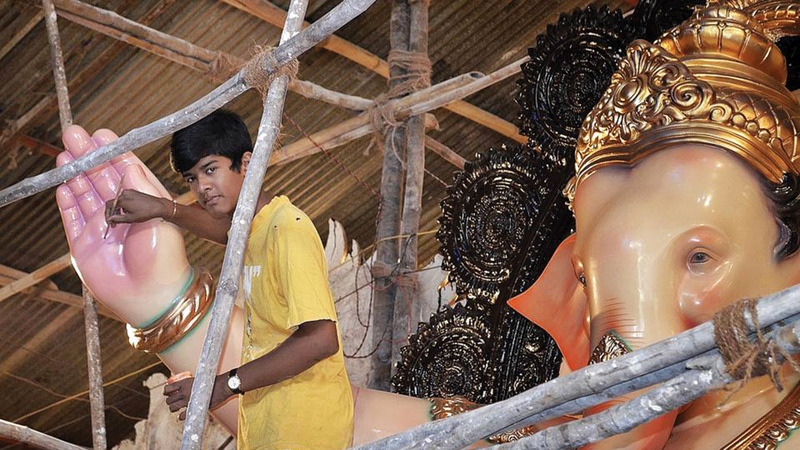 ويبذل الحرفيون شهوراً طويلة من الجهد في صنع تماثيل غانيشا، التي يلتف حولها الهندوس طلباً للحظ والتوفيق.