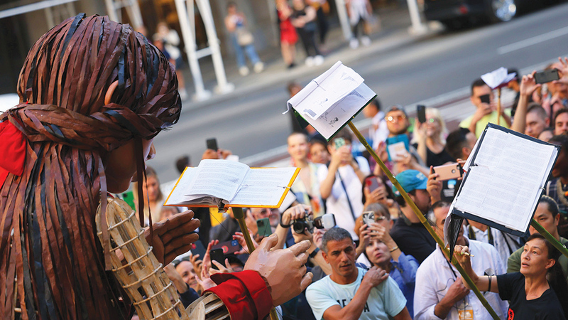وصلت الدُمية الشهيرة «أمل الصغيرة» إلى مكتبة نيويورك العامة كجزء من المعرض الفني «أمل الصغيرة تمشي»، وترمز هذه الدُمية العملاقة، التي تجوّلت في أرجاء العالم في رحلة ملحمية، إلى معاناة الطفل السوري، خصوصاً اللاجئين، وتجوّلت هذه الدُمية بين اليونان وإيطاليا وبلجيكا وسويسرا وألمانيا وفرنسا، كما قطعت «أمل الصغيرة»، التي يفترض أن عمرها 12 عاماً، بحر المانش الذي عبره عشرات الآلاف من طالبي اللجوء.