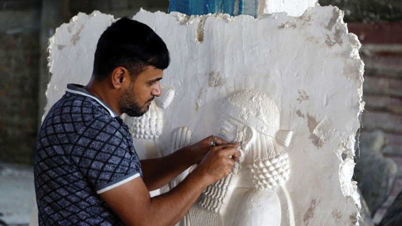 نحّات الموصل «يُعيد إنشاء ما تم هدمه» من جداريات العراق