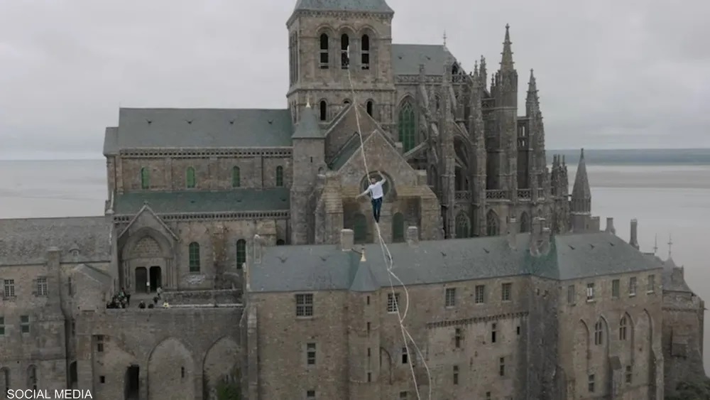 تمكن مغامر فرنسي من تحطيم الرقم القياسي العالمي بالسير لمسافة 1.4 ميل (2.2 كيلومتر تقريبا)، على حبل معلّق، في جبل القديس ميشيل، وهي جزيرة حجرية صغيرة في نورماندي.