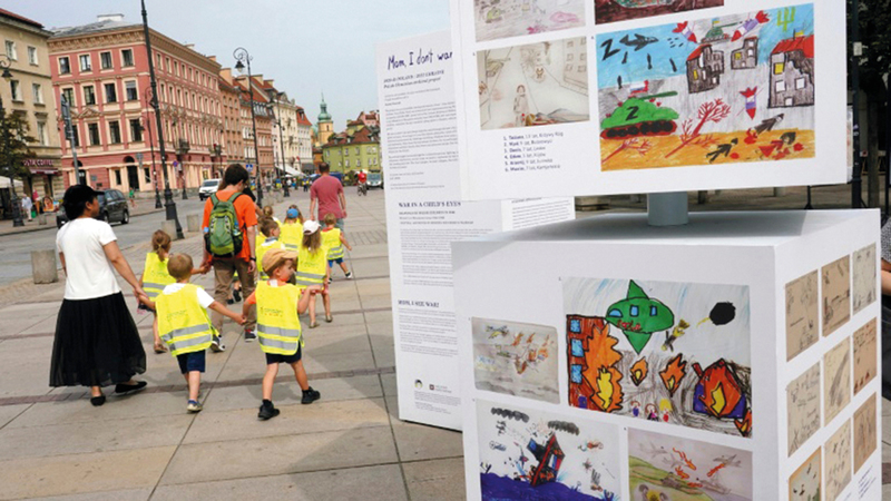 إنها لوحات رسمها الأطفال الذين عايشوا الغزو الروسي لأوكرانيا في فبراير الماضي. وتُعرض الرسوم إلى جانب الكثير من لوحات تاريخية رسمها أطفال بولنديون منذ عام 1946.
