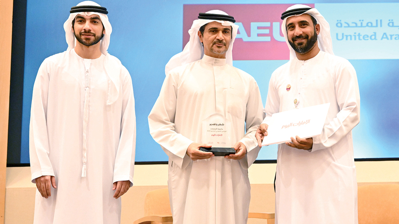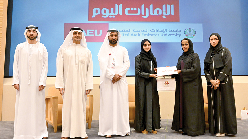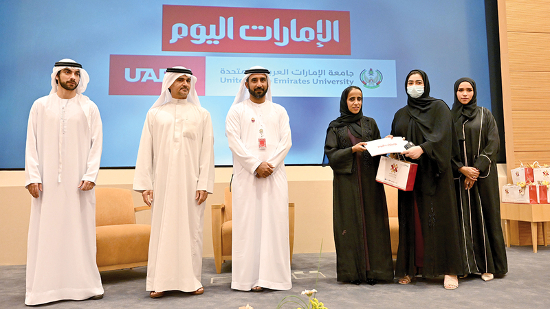 ونظمت جامعة الإمارات في مقرها بمدينة العين أخيراً حفل تكريم طلبة قسم الإعلام والصناعات الإبداعية المشاركين في التدريب مع «الإمارات اليوم» في تغطية فعاليات «إكسبو 2020 دبي».