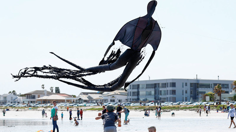 أطفال يلهون بالطائرات الورقية خلال مهرجان «كيب تاون الدولي الـ28 للطائرات الورقية» في جنوب إفريقيا، وهي حملة توعية بـ«اليوم العالمي للصحة العقلية»، إذ يجتمع عشاق الطائرات الورقية لإطلاق طائراتهم الملوّنة في السماء، والمشاركة في أنشطة اجتماعية وخيرية تُقام على هامش المهرجان، وجمع الأموال لدعم مراكز علاج ورعاية مرضى الصحة العقلية.