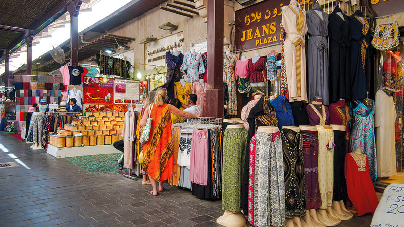 تذكارات ومشغولات ومنتجات مطرّزة بحروف «الماركة المسجلة».. العلامة التي تساوي الترحاب، والحفاوة، والابتسامة التي تغمر الوجوه، وإمتاع الزوار بكل ما يبهر العيون.. هنا دبي، حيث السوق الكبير في برّ دبي، والأجواء العتيقة، وماضي المدينة الجميل الذي انطلقت منه إلى أعلى وأبعد مما تخيله البشر.