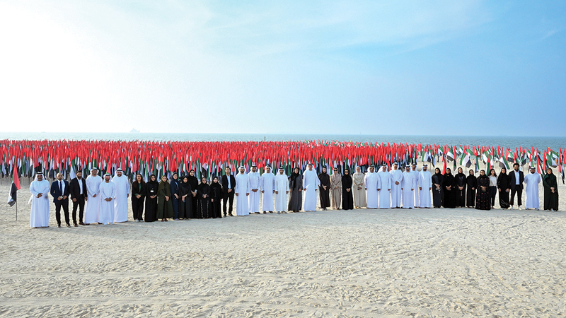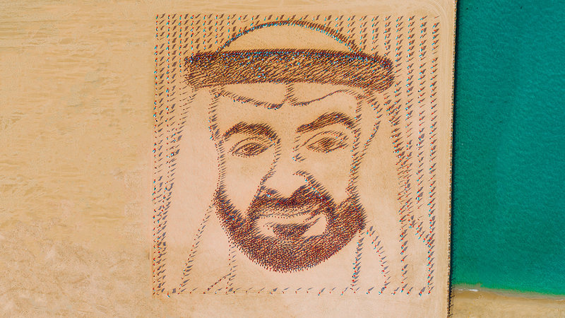 4000 عَلَم تُشكِّل صورة رئيس الدولة في «حديقة الأَعلَام» بدبي