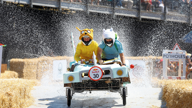 تنافس نحو 50 سائقاً في سباق نظم أول من أمس، في مدينة كيب تاون بجنوب إفريقيا لمركبات محلية الصنع مثبتة على أربع عجلات، لكنّها من دون محرّك، إذ تتحرك بدفع من القوة البشرية والجاذبية وحدهما.
