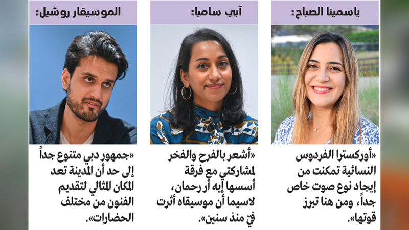 وقالت قائدة أوركسترا الفردوس ياسمينا الصباح، عن الحفل لـ«الإمارات اليوم»، إن «الأوركسترا التي رأت النور من خلال الحدث العالمي (إكسبو دبي) شاركت في ثماني أمسيات، بما فيها حفلا الافتتاح والختام، وتتابع الفرقة عروضها مجدداً تحت قبة الوصل، وسيكون ذلك بمثابة العودة إلى المكان الذي انطلقت منه الأوركسترا»، مشيرة إلى أن هذا المكان يحمل مكانة خاصة للفرقة، إذ إن قبة الوصل موقع لا مثيل له في العالم، على حد تعبيرها.