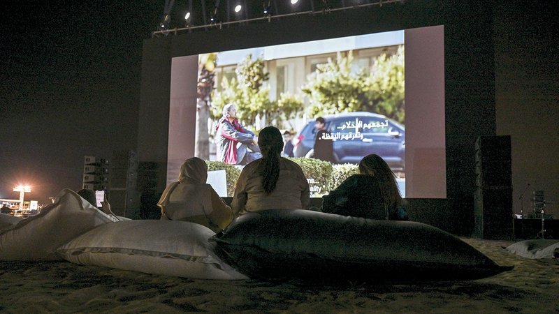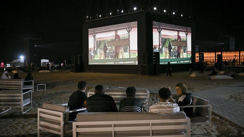 وعلى مدار ثلاث ليال تحولت المحمية إلى قاعة سينما فريدة من نوعها، إذ صفت المقاعد وكذلك الوسائد على رمال الصحراء، ونصبت الشاشات الكبيرة لتعرض أفلاماً طويلة وقصيرة لمبدعين من داخل الدولة وخارجها.