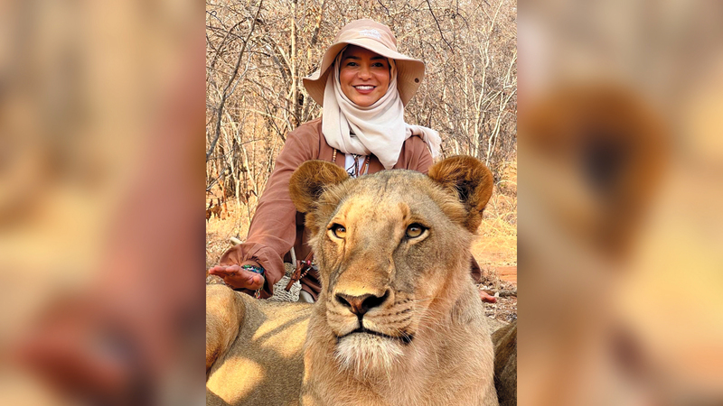 بالفيديو.. منى التميمي.. إماراتية تسير مع الأسود وتتناول الغداء في «السماء»