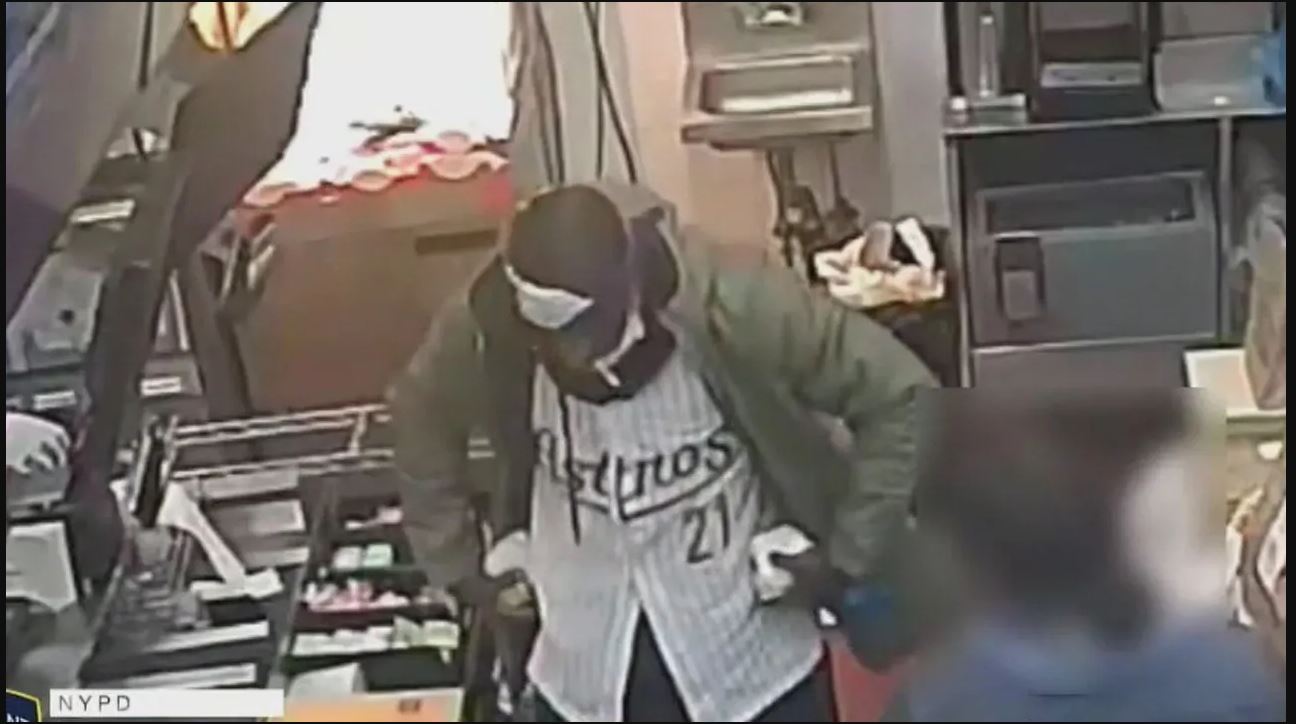 ووزعت الشرطة صورا وفيديو من كاميرات مراقبة المطعم، للص الجائع والذي لاذ بالفرار حاملا أكثر من عشرين قطعة دجاج صغيرة مقلية، وشطيرتي لحمة برغر مزدوجة من فروع ماكدونالدز في حي برونكس بعد تهديد أمين الصندوق بسكين.