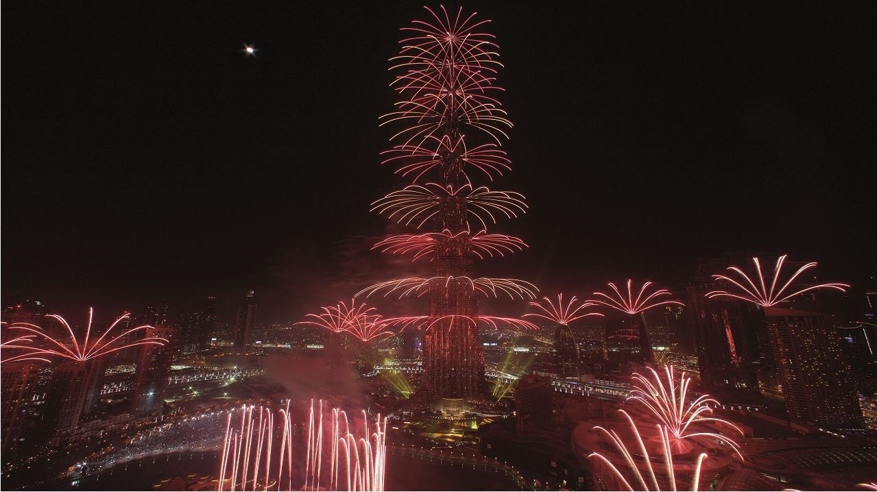 وتُشكّل عروض الألعاب النارية جزءاً أساسياً من الاحتفالات في دبي مساء 31 الجاري، وتقام العروض في عدد من «وجهات دبي» الرئيسة من نقاط الجذب السياحية والساحات العامة، إضافة إلى عدد من الفنادق المتميزة. ويقدم برج خليفة، مع حلول منتصف الليل، عرضاً هو الأكبر على الإطلاق ويكون محط أنظار العالم وتنقله الفضائيات العالمية على الهواء مباشرة. كما تقدم مجموعة من أبرز معالم دبي الشهيرة عروضها الخاصة احتفالاً بالعام الجديد، بما في ذلك: برج العرب، وبرواز دبي، وجزيرة بلوواترز، وذا بييتش، وجميرا بيتش ريزيدنس.