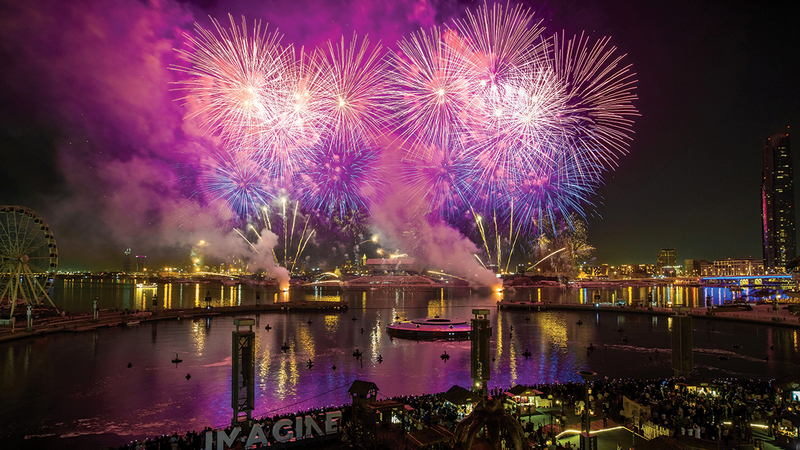 وتشكل عروض الألعاب النارية جزءاً أساسياً من الاحتفالات في دبي مساء 31 الجاري، وتقام العروض في عدد من «وجهات دبي» الرئيسة من نقاط الجذب السياحية والساحات العامة، إضافة إلى عدد من الفنادق. ويقدم برج خليفة، مع حلول منتصف الليل، عرضاً هو الأكبر على الإطلاق، ويكون محط أنظار العالم وتنقله الفضائيات العالمية على الهواء مباشرة. كما تقدم مجموعة من أبرز معالم دبي الشهيرة عروضها الخاصة احتفالاً بالعام الجديد، بما في ذلك: «برج العرب»، و«برواز دبي»، و«جزيرة بلوواترز»، و«ذا بييتش»، و«جميرا بيتش ريزيدنس».