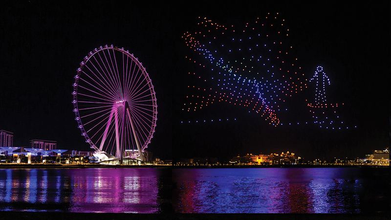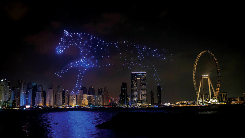• فعالية عروض «الدرون الضوئية» تتضمن سرباً من مئات الطائرات التي ستقدم عروضها لتضيء سماء دبي.