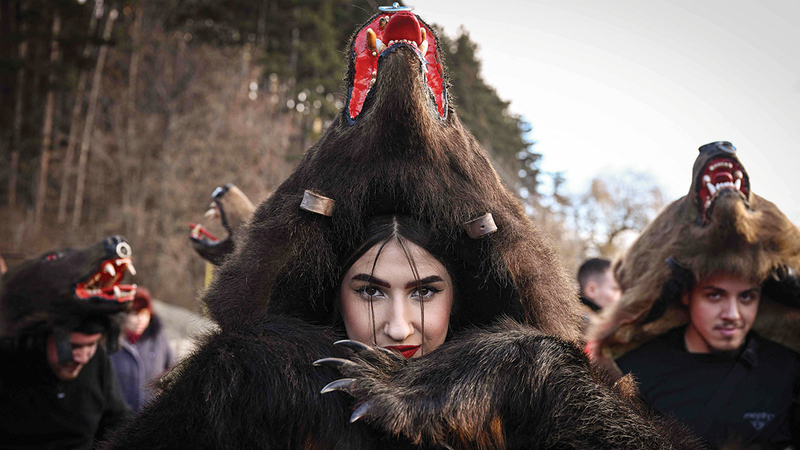 ويتعرّق كوزمان (17 عاماً) وهو يرتدي فراءً يزن 40 كيلوغراماً إلا أنه لا يفوّت المشاركة في المهرجان الموروث من القدماء. ويقول وهو يحرّك رأس دُبّ يرتديه على وقع الطبول والمزامير والصفارات، إن «فراء الدب هذا كان لجدّي».