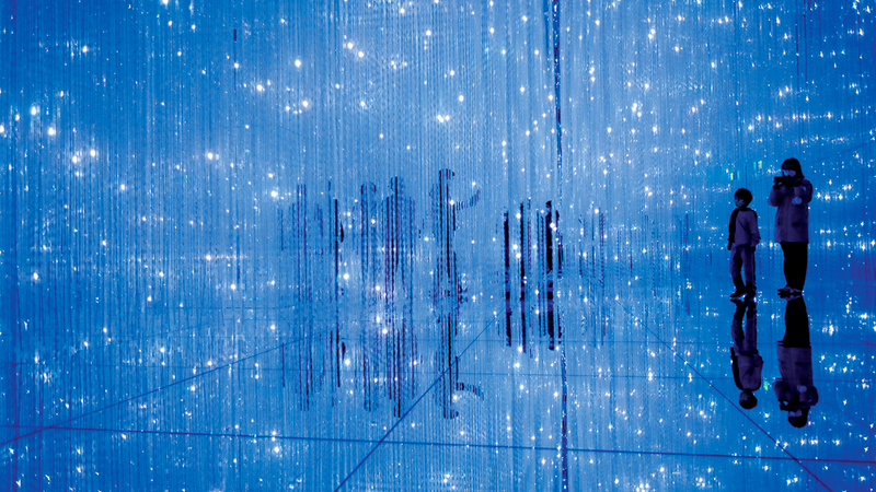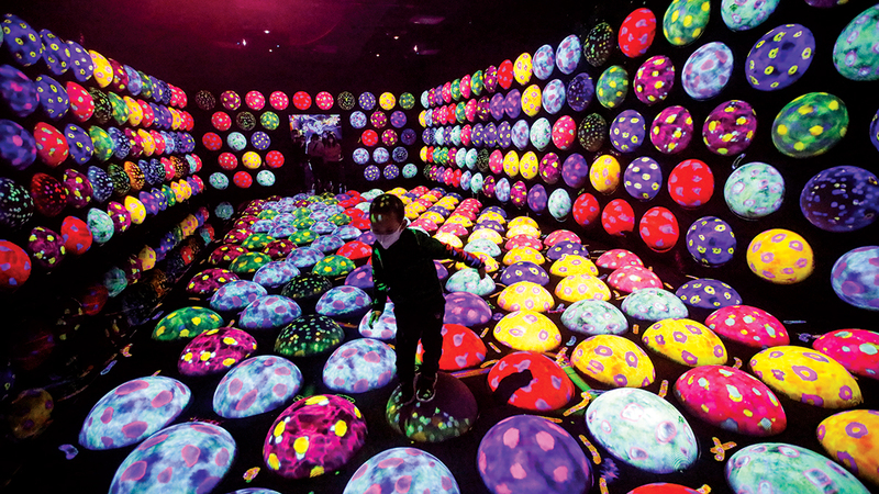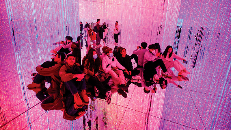 تفاعل الزوّار مع لوحات وأعمال مبهرة تنتمي لعالم الفن الرقمي الغامر، أنجزها فريق العمل الجماعي الفني ومقرهم في طوكيو، لعرضها في متحفهم الذي تم تدشينه، أخيراً، وعشية احتفالات عيد الميلاد في العاصمة الصينية بكين.