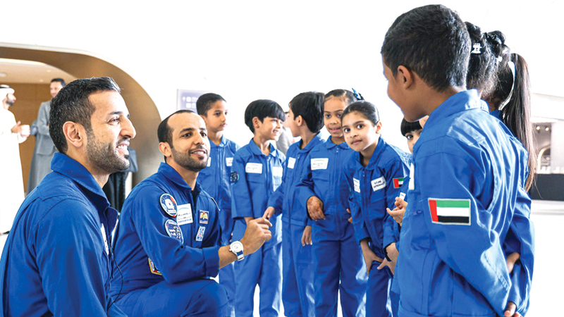 التقى رائدا الفضاء الإماراتيان هزاع المنصوري وسلطان النيادي، مجموعة من الأطفال المهتمين بعلوم الفضاء واستكشافه في متحف المستقبل.