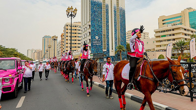 وتبدأ فعاليات مسيرة فرسان القافلة الوردية في إمارة الشارقة، إذ سيجتمع الفرسان في شاطئ الحيرة، وسيتحركون عبر شوارع الشارقة وصولاً إلى «الحصن» بمنطقة «قلب الشارقة»، ثم تنطلق المسيرة من مستشفى ثومبي عجمان، عبر مناطق عدة، وصولاً إلى «مارينا الزوراء 1».