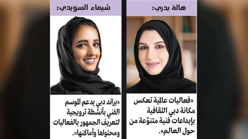 وقالت مديرة إدارة براند دبي، الذراع الإبداعية للمكتب الإعلامي لحكومة دبي شيماء السويدي: «يشارك براند دبي في دعم موسم دبي الفني من خلال سبل عدة متنوعة لضمان أوسع نطاق من التعريف بمكونات هذا الموسم والجهات التي تحتضنها، بما في ذلك إصدار الأدلة الإرشادية التي توضح أهم الفعاليات ومواقعها المختلفة في دبي، والاستفادة من منصات التواصل الاجتماعي ووسائل الإعلام المختلفة، وتشجيع المؤثرين على زيارة تلك الوجهات والفعاليات والمشاركة في التعريف بقيمتها ومساهمتها الكبيرة في تعزيز المشهد الإبداعي في دبي، بالإضافة إلى العديد من الأنشطة الترويجية الأخرى التي يشارك بها براند دبي في إطار الحملة».