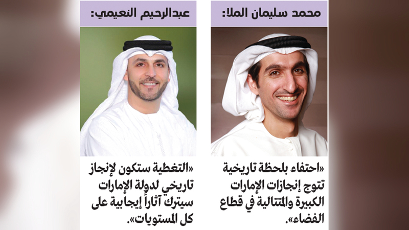وأكد على أهمية هذا الإنجاز التاريخي لدولة الإمارات الذي سيترك آثاراً إيجابية على كل المستويات، ويعزز من جهودها في صناعة المستقبل واستمرار التقدم الحضاري والإنساني، ومساهمتها في مجالات استكشاف الفضاء والتكنولوجيا والعلوم المتقدمة. كما تأتي هذه التغطية في إطار حرص (أبوظبي للإعلام) على إبراز أهم الأحداث الوطنية التي ترسخ صورة دولة الإمارات الحضارية، وتسلط الضوء على إنجازاتها الريادية».