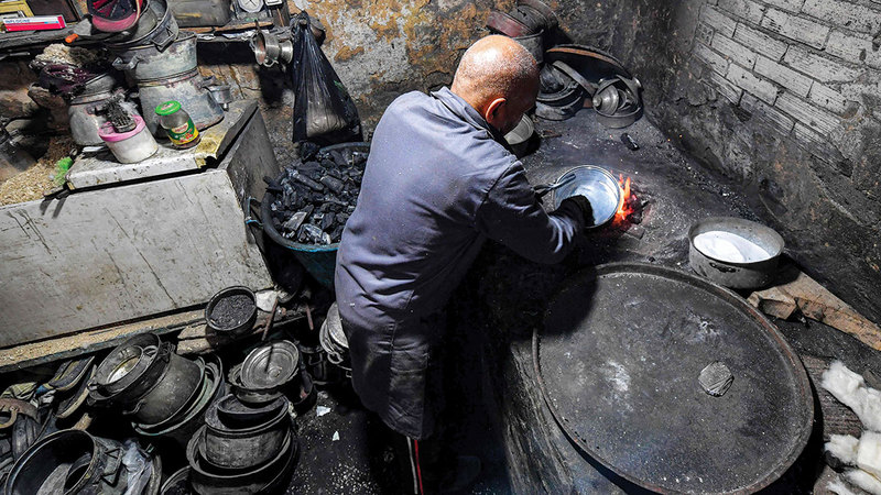 يقف الحِرفي الشاذلي المغراوي، في ورشته بالعاصمة التونسية وسط أباريق وأقدار متراصة هنا وهناك، وفي انتظاره عملاء دأبوا منذ سنوات على جلب أواني الطبخ النحاسية لطلائها بطبقة من القصدير وتلميعها لاستعمالها في إعداد الأكل خلال شهر رمضان.