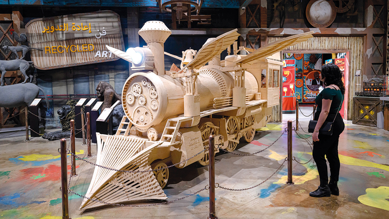 ويستمتع ضيوف القرية العالمية، الوجهة العائلية الأولى للثقافة والترفيه والتسوّق في المنطقة، بجولة في هذا المتحف بين الأقسام المتنوّعة برؤية ما يزيد على 250 معروضة من أنحاء العالم. ويطل في النسخة الرابعة له مع مجسّمات تحمل مفهوم الاستدامة، ومنها مجسّم قطار ستيم بانك المصنوع من أعواد الثقاب، والذي نفذ باستخدام أكثر من مليون قطعة من أعواد الثقاب. ويعدّ هذا المجسّم من أكبر الإبداعات المصنوعة من أعواد الثقاب على يد باتريك أكتون، ويبلغ طوله أكثر من 20 قدماً وارتفاعه تسع أقدام، واستغرق تنفيذه ما يقارب 3000 ساعة من العمل موزعة على 14 شهراً. ويضمن هذا القطار للزوّار تجربة تفاعلية جديدة، إذ يشتمل تصميمه على مصباح أمامي وجرس ورافعة لفتح أبواب صندوق الاحتراق.