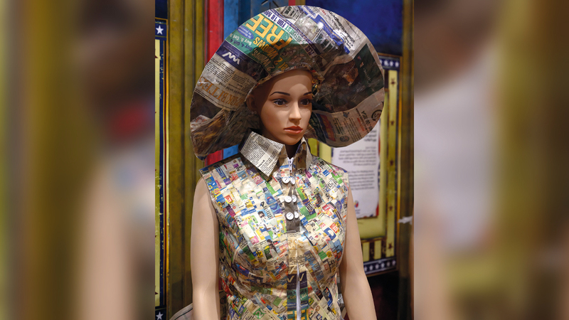 ويخصص المتحف قاعة للأزياء التي صنعت من مواد معاد تدويرها كعبوات المشروبات الغازية، والشعر البشري، وورق المحارم، وقد أضيف لها في هذا العام فستان قسائم «بالتيمور صن»، والذي صنع من كوبونات صحيفة «بالتيمور صن»، إلى جانب الشريط اللاصق والغراء، واستغرق الفستان ما يقارب 30 ساعة من العمل حتى أنجز.