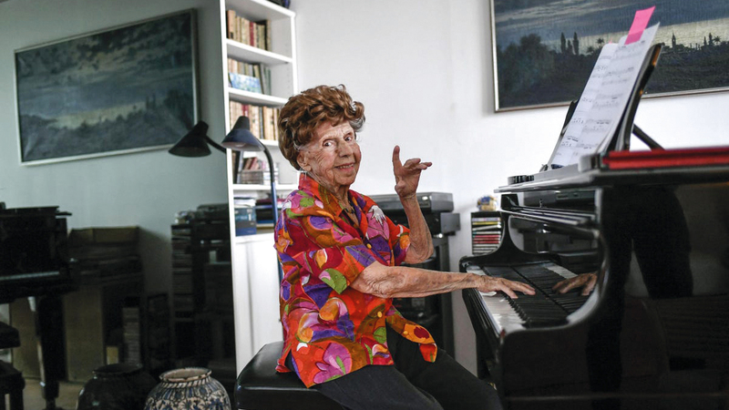 وداخل شقتها من مبنى يطل على نهر السين، تتنقّل المرأة النحيلة ببطء بين آلات البيانو الثلاث في غرفة معيشتها. وليس طول عمرها وحده ما يثير الإعجاب، بل كذلك شغفها في العزف على البيانو، وإصرارها على الاستمرار في ذلك. وتصف نفسها بحماسة بأنها «شابة»، وترى أن «الأعمار قصص لا وجود لها».