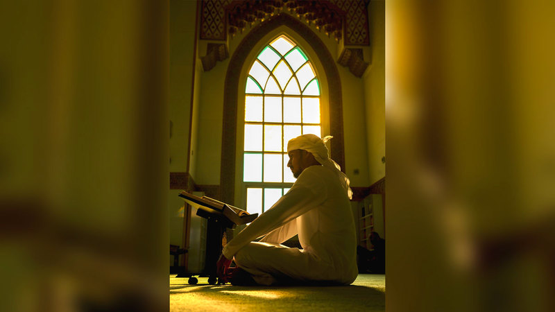 مع القرآن الكريم، وبين جنبات مسجد السلام في دبي، صائم يحيي نهار شهر رمضان الفضيل بتلاوة الآيات العطرة، والتدبر في معانيها خلال هذه الأيام المباركة.
