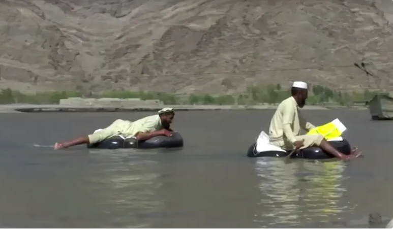 في مشهد لا يصدق، ظهر بضعة معلمين أفغان في مقطع فيديو يسبحون في النهر بغية الوصول إلى مدرستهم المتهالكة في مقاطعة نانجارهار بشرق البلاد.