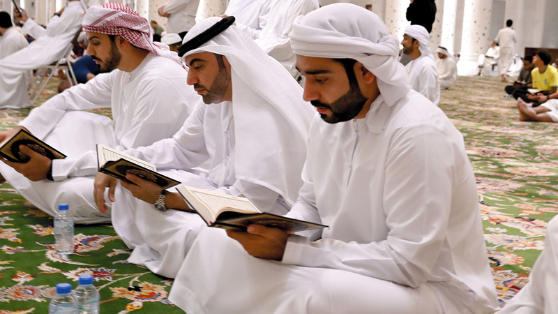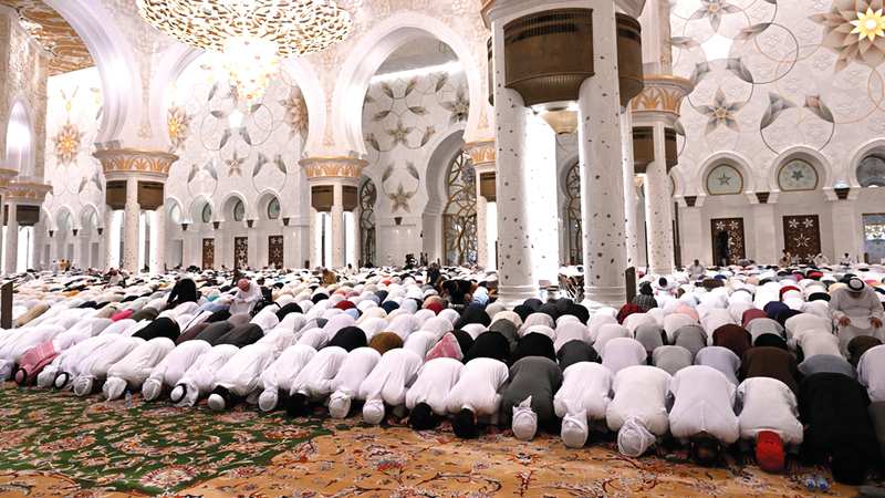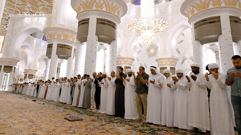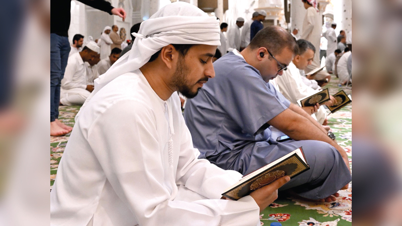جباه ساجدة، وأيادٍ مرفوعة، وعيون معلّقة بكتاب الله، وقلوب تتلمس أنوار ليلة خير من ألف شهر.. ليلة القدر.. في جامع الشيخ زايد الكبير.