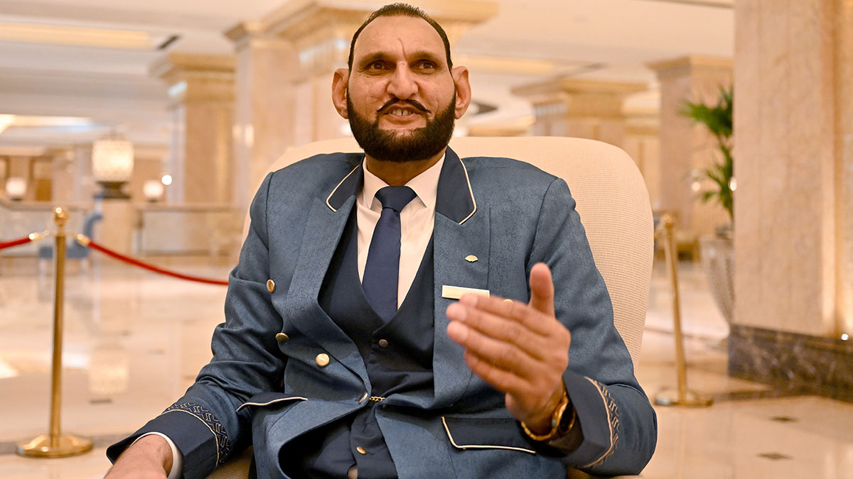 وأوضح عبدالجبار، الذي يعمل في فندق قصر الإمارات ماندارين أورينتال في أبوظبي، ويبلغ 50 عاماً، أنه قدم من بلده باكستان إلى الإمارات في عام 1994، حيث عمل في فندق خمسة نجوم في دبي لمدة 10 سنوات، ثم قرر العودة إلى بلده، والاستقرار مع أسرته، وافتتاح مشروع خاص، ولكنه عاد مرة أخرى إلى دبي، وعمل في فندق آخر حتى عام 2015، قبل أن يعود إلى بلده ويبدأ مشروعاً خاصاً جديداً، ولكن تعرض للخسارة بسبب جائحة «كوفيد- 19»، فعاد مرة أخرى إلى الإمارات، وتحديداً أبوظبي، منذ عام، والتحق بالعمل في «قصر الإمارات». معرباً عن سعادته بالوجود في الإمارات، حيث يتعامل معه الناس باحترام، كما تعتبر الحياة فيها أسهل بالنسبة له. وأشار إلى أن طوله الزائد بدأ وهو في عمر 20 عاماً، وقبل ذلك خلال طفولته ودراسته في المدرسة كان طفلاً طبيعياً مثل بقية أقرانه، واستمرت الزيادة حتى عمر 38 عاماً، وأشار الأطباء إلى أنها نتيجة لاضطراب في الهرمونات.