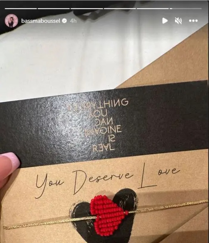 لكن المفاجىء والصادم ما نشرته بسمة بوسيل بعدها وهو صورة لبطاقة كتب عليها بالإنجليزية جملة "أنت تستحق الحب"، دون أن تتحدث عن المقصود من هذه الصورة أو الجملة.