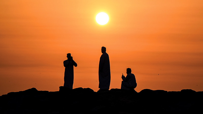 عدسات تسابق الزمن على شاطئ جميرا من أجل تسجيل لحظات الغروب القصيرة قبل غياب آخر شعاع للشمس، والاحتفاظ بألق هذه الألوان السحرية التي تملأ الأفق المفتوح على الجمال في بحر دبي.