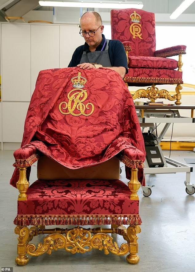 وقال القصر إن الكراسي التي ستُستخدم خلال الأجزاء الأولى من المراسم وتلك التي ستستخدم لتتويج كاميلا كانت قد صنعت لتتويج والدة تشارلز الملكة إليزابيث في 1953.