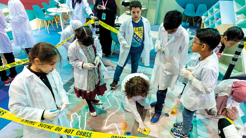 ارتدى الأطفال «الروب الأبيض» والقفازات المطاطية، واتخذ كل منهم موقعه في ركن «العلوم»، للمشاركة في ورشة مثيرة حملت اسم «علم الطب الشرعي» ضمن فعاليات الدورة الـ14 من مهرجان الشارقة القرائي للطفل.